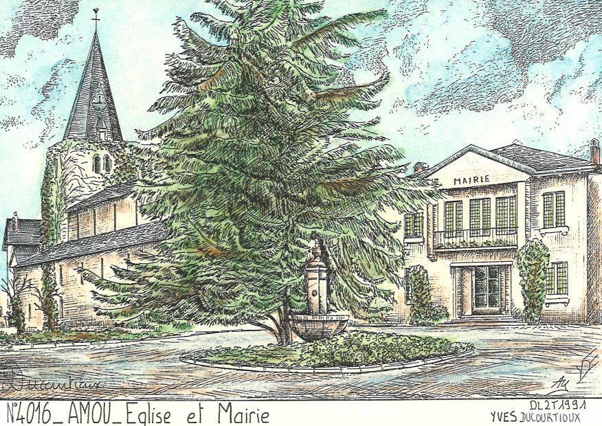 N° 40016 AMOU église et mairie |